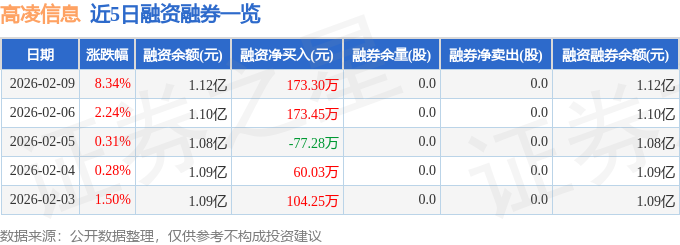 证券之星消息,截至2026年2月9日收盘,高凌信息(688175)报收于39.12元,上涨8.34%,换手率3.27%,成交量4.22万手,成交额1.6亿元。